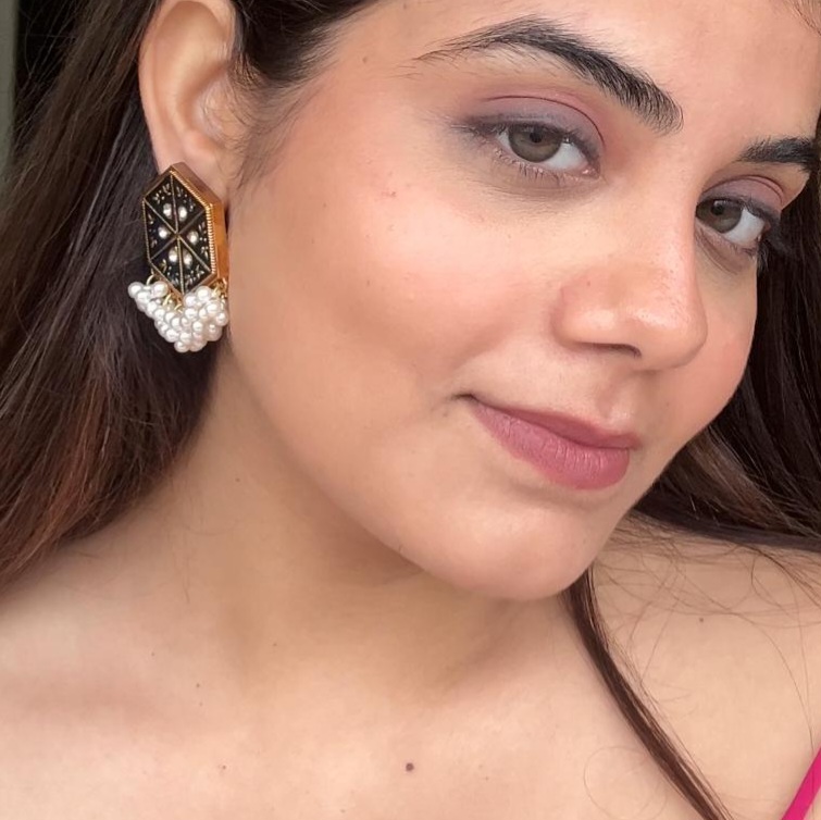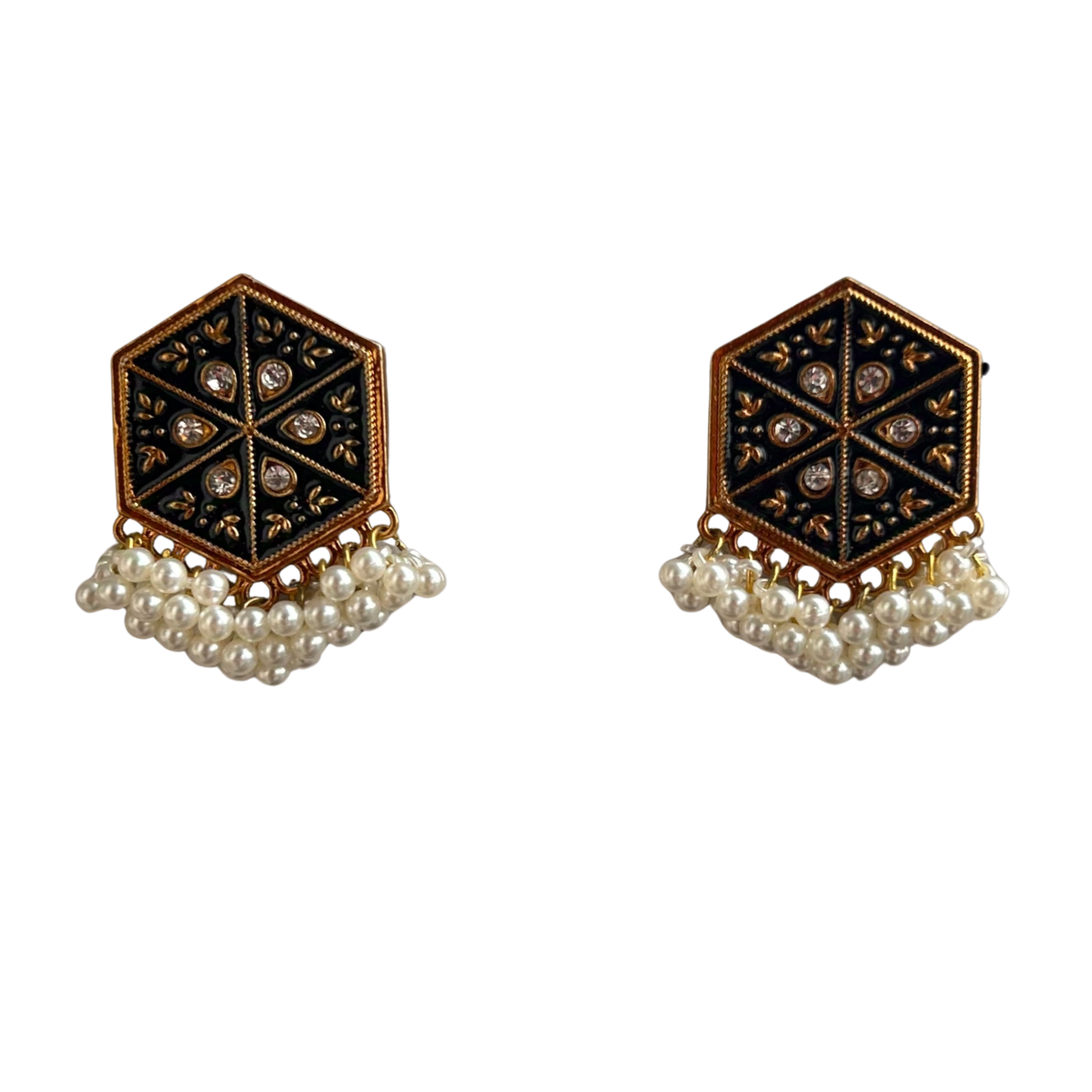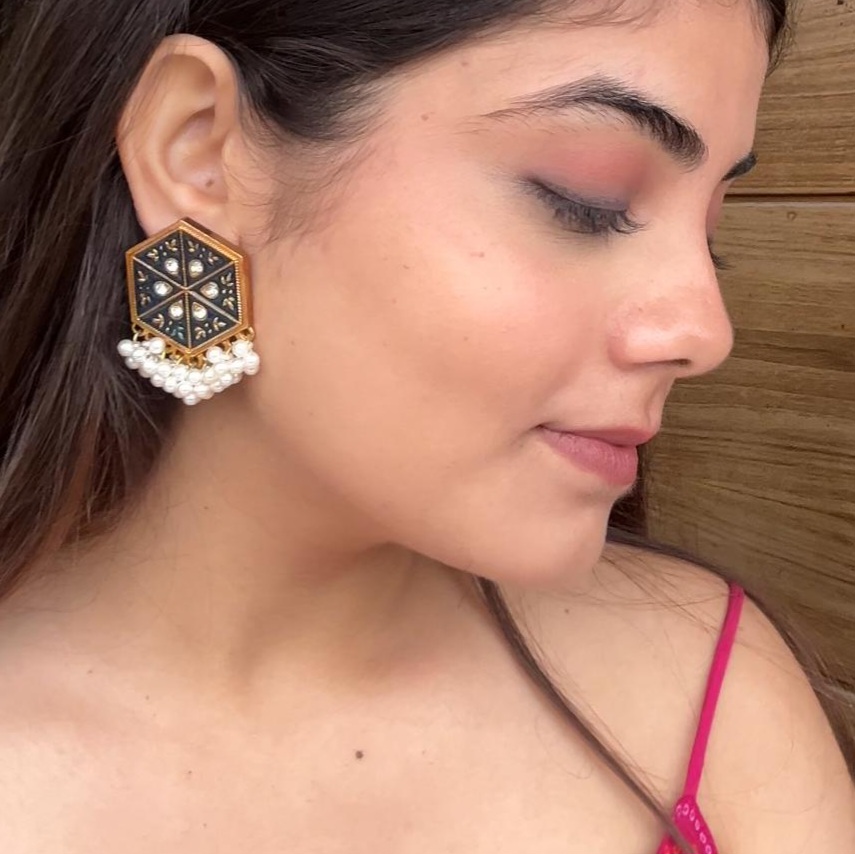 Black Hexagonal Stud Jhumka with Pearl Drop