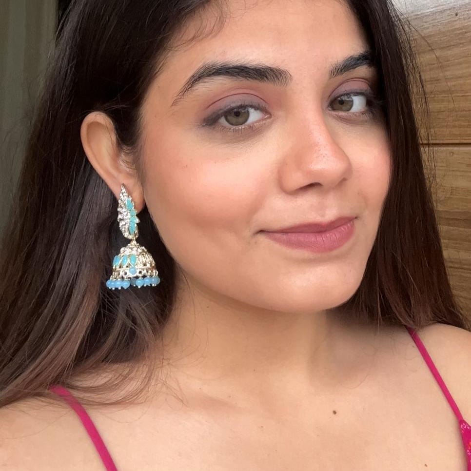 Blue Bell Shaped Pushback Dome Drop Jhumka