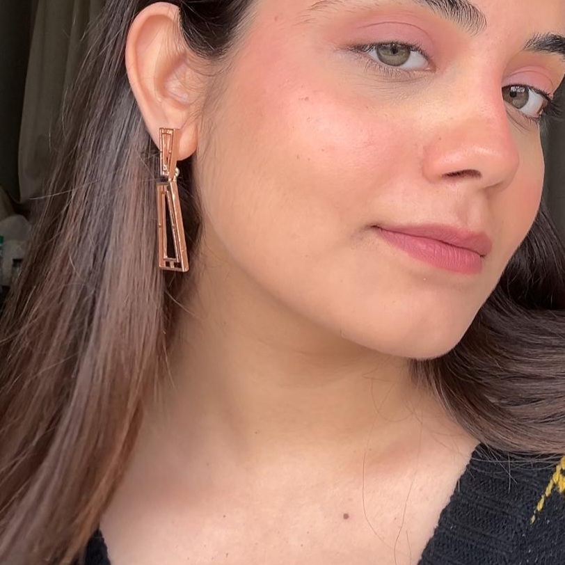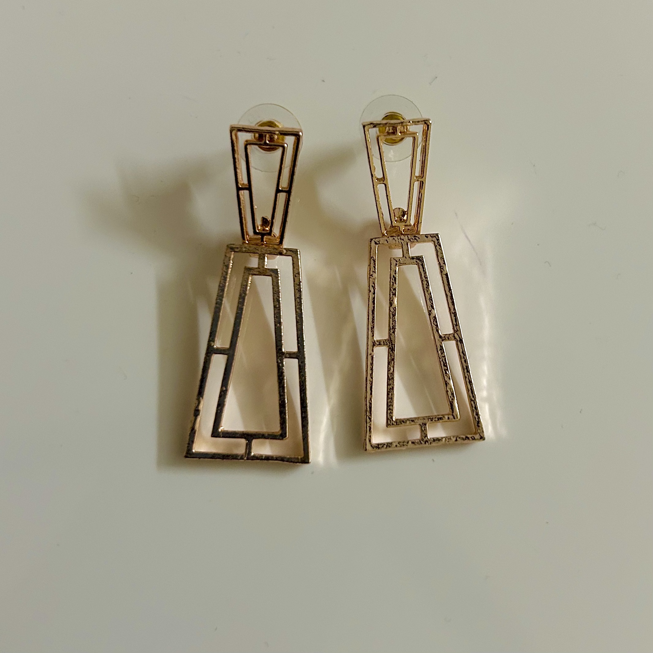 Geometric Rose Gold Rectangle Pushback Earrings
