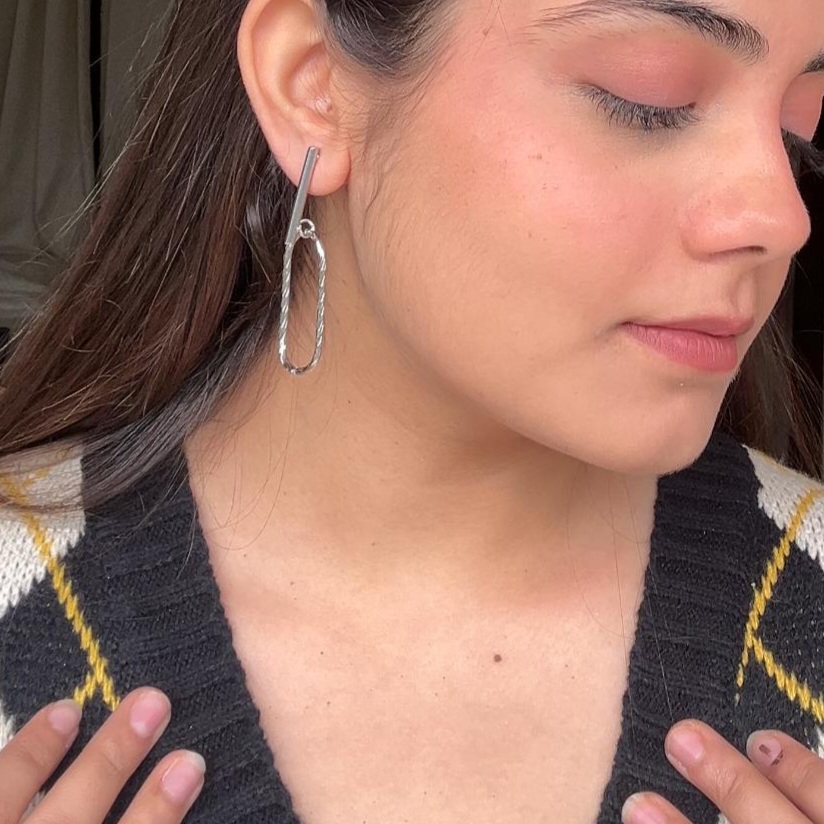 Geometric Silver Rectangle Earrings For women & Girls
