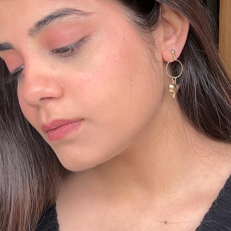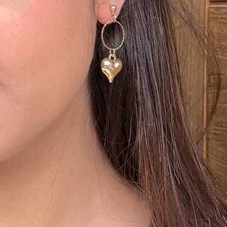 Gold Hoop Earrings with Four Pointed Heart Drop