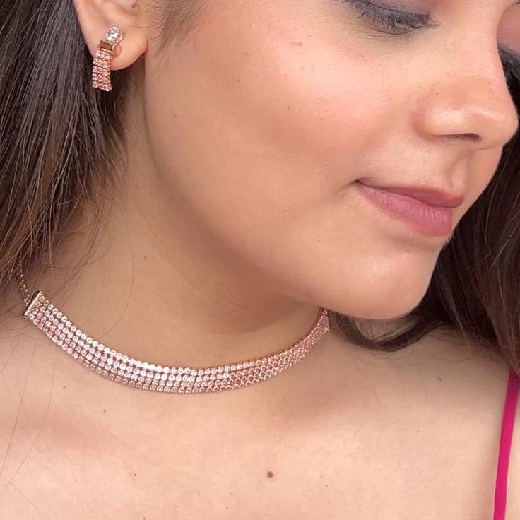 Gold Plated Rose Gold with Pair of Earrings