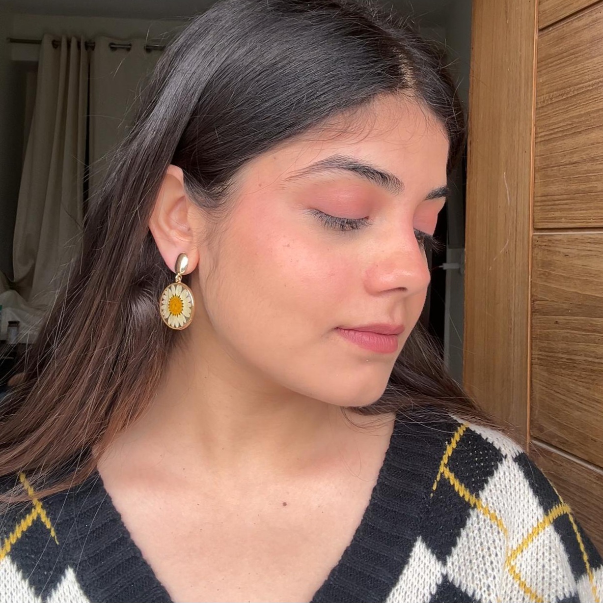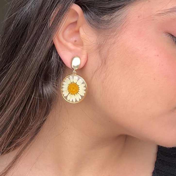 Golden Daisy Flower Drop Earrings Resin Finish For Women and Girls
