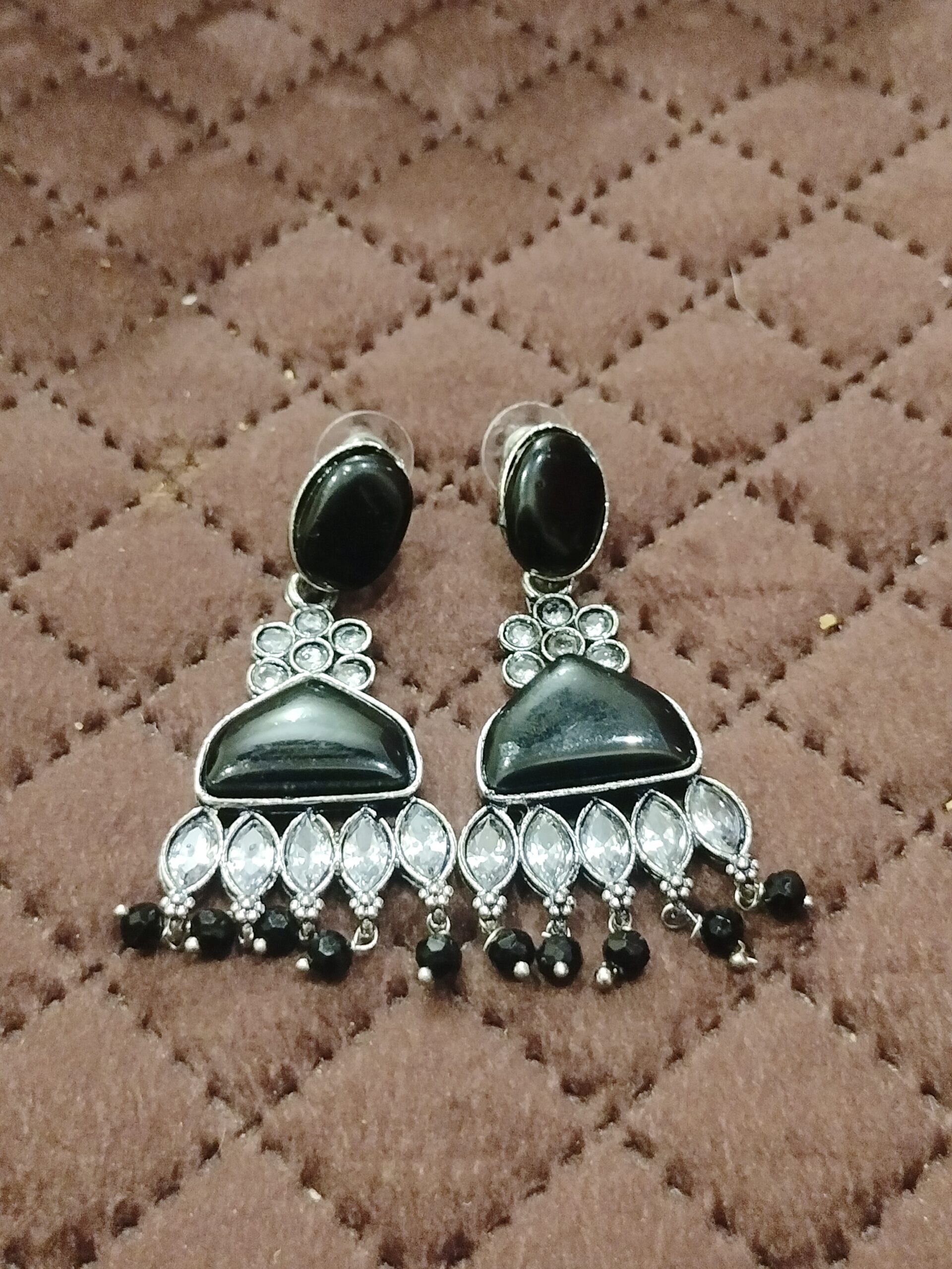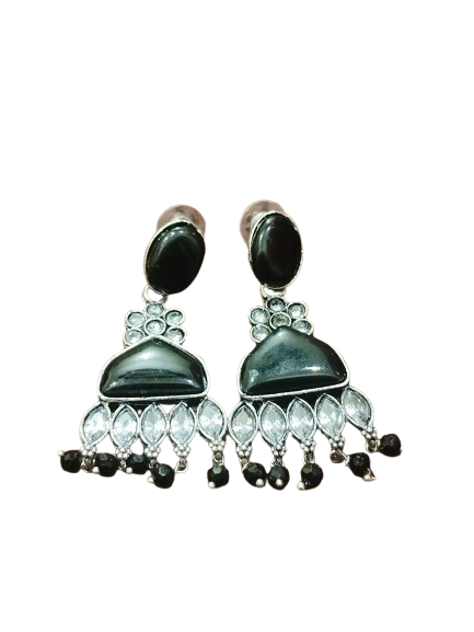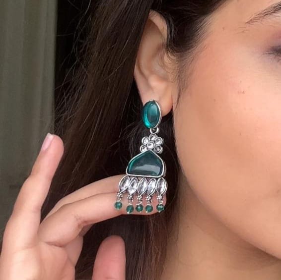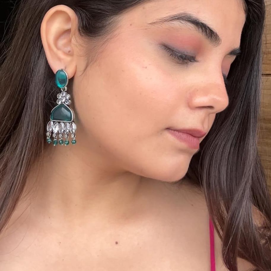 Green Enamelled Oxidized Bell pearl drop jhumka