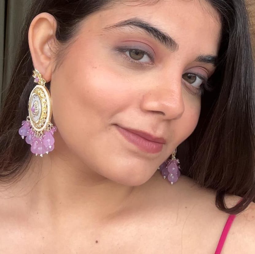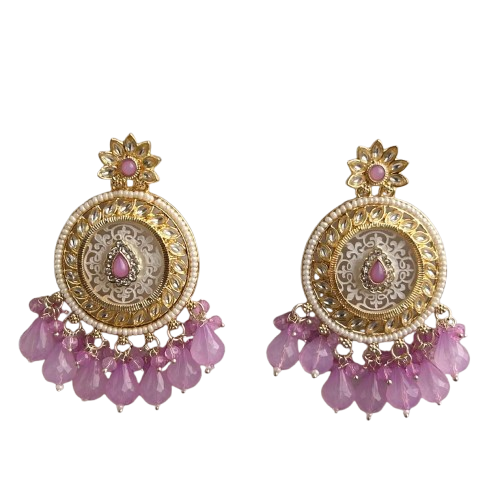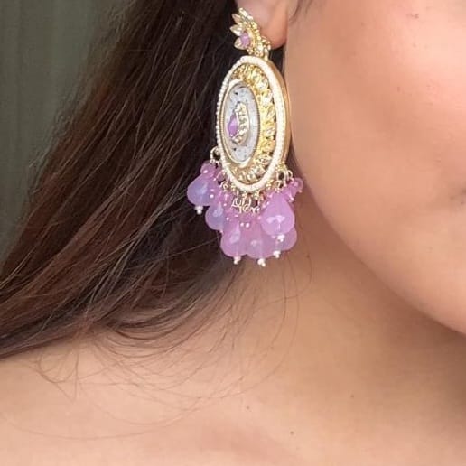Lavender Round Chandbali Jhumka Earrings with Pearl Drop
