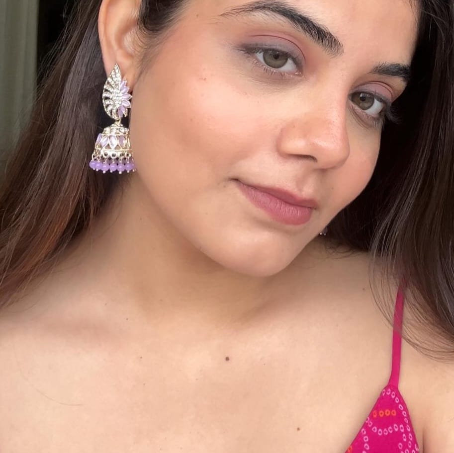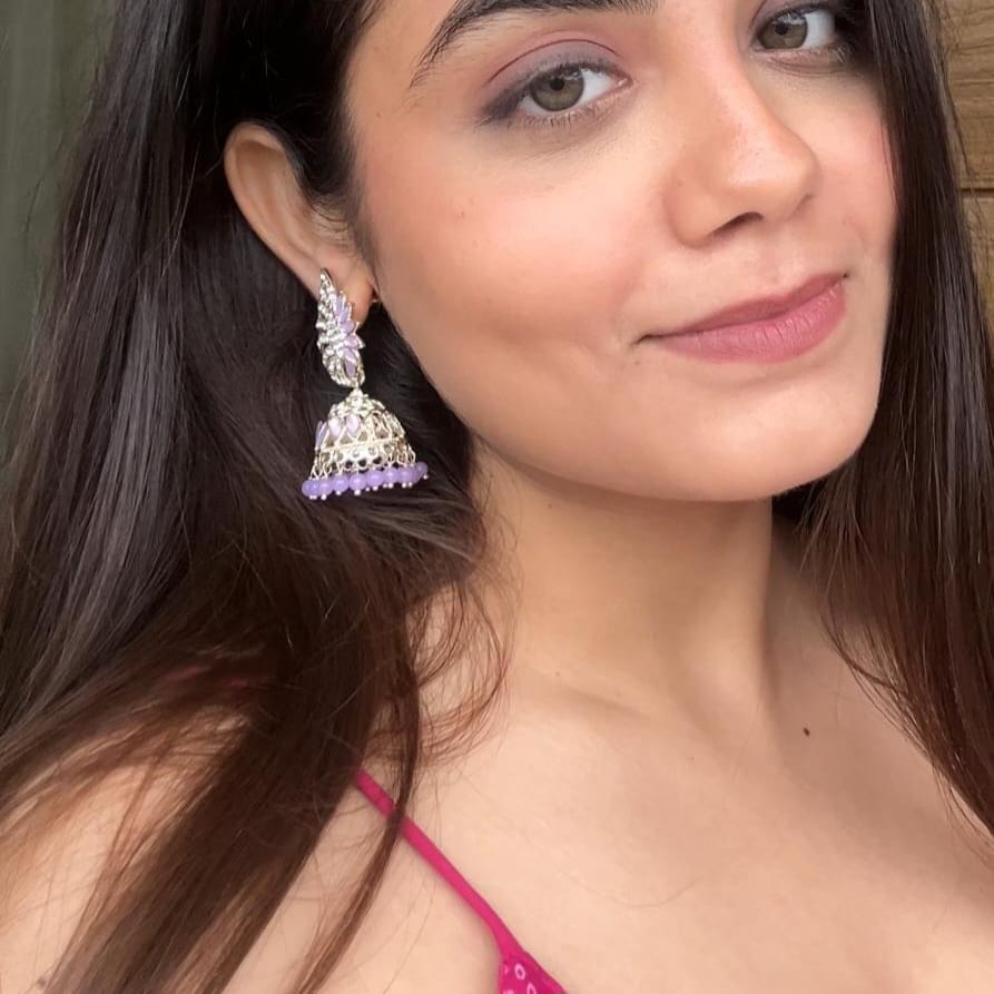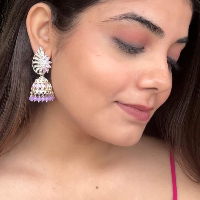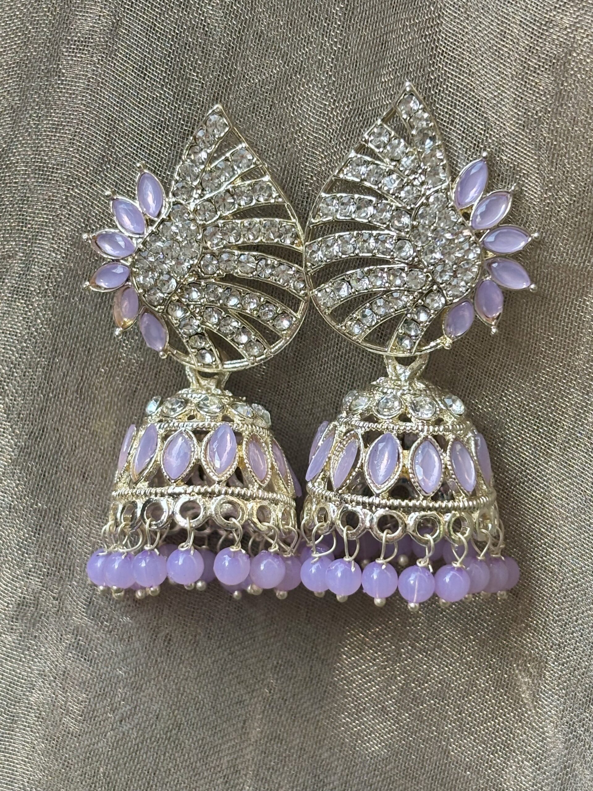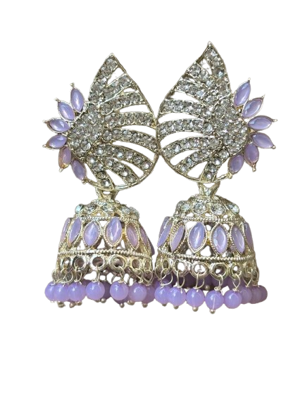 Lavender Stone Bell Shaped Pushback Dome Drop Jhumka