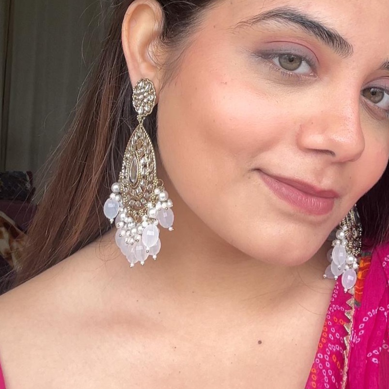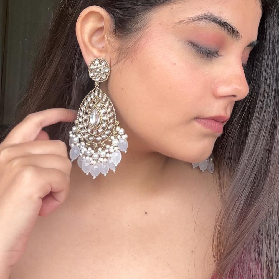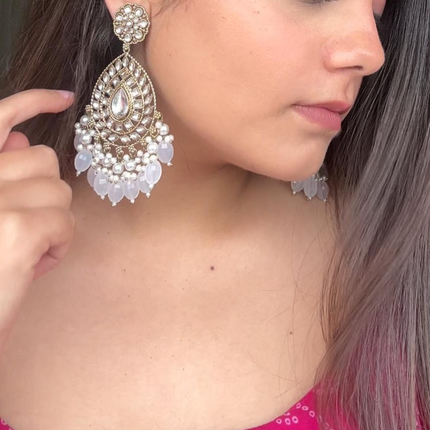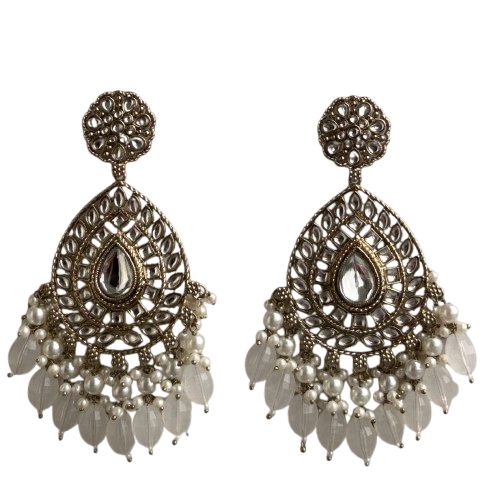 Silver Chandbali Jhumka Earrings with Crescent Shape and Pearl Drop