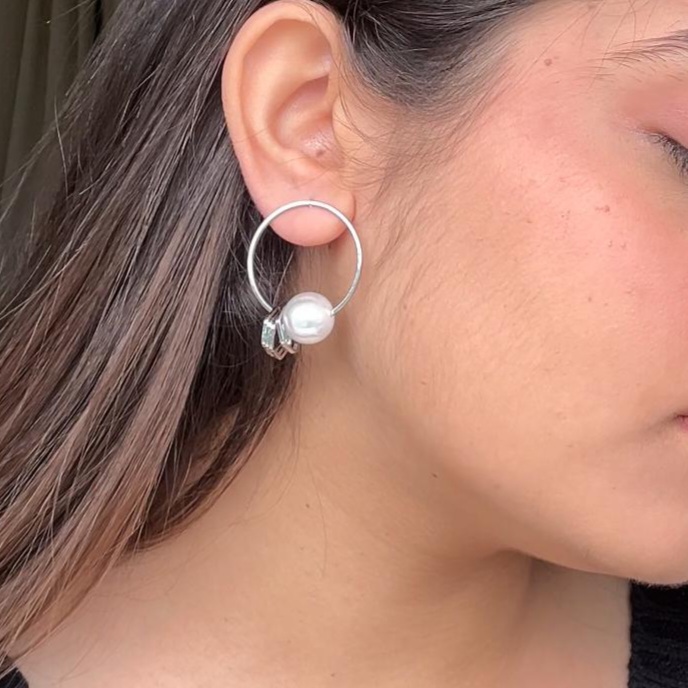 Silver hoop with pearl