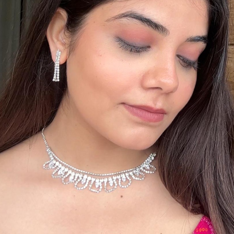 Be the first to review “Silver Plated Silver Teardrop Stone Drop Necklace with Pair of Earrings (Traditional/Party/Wedding)”