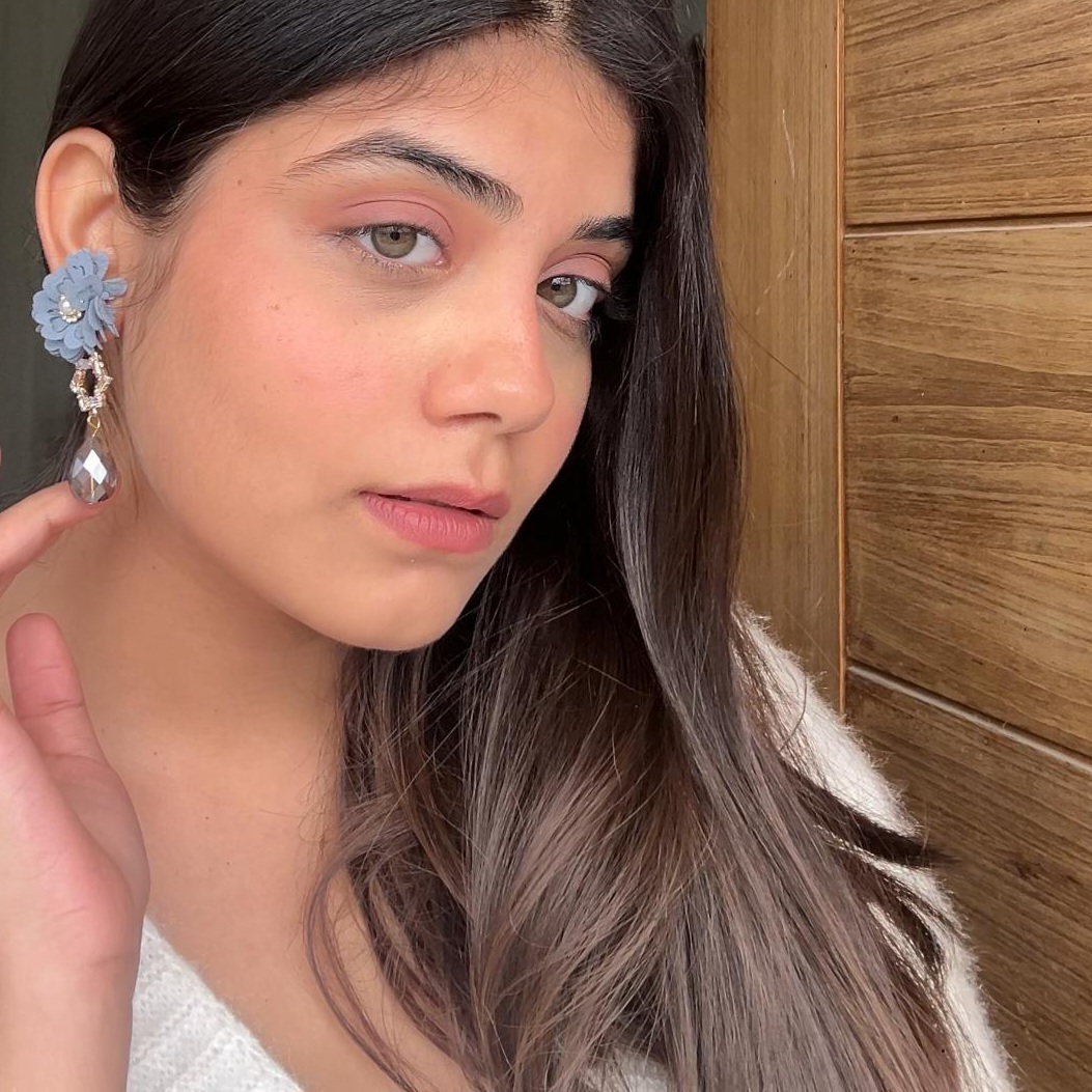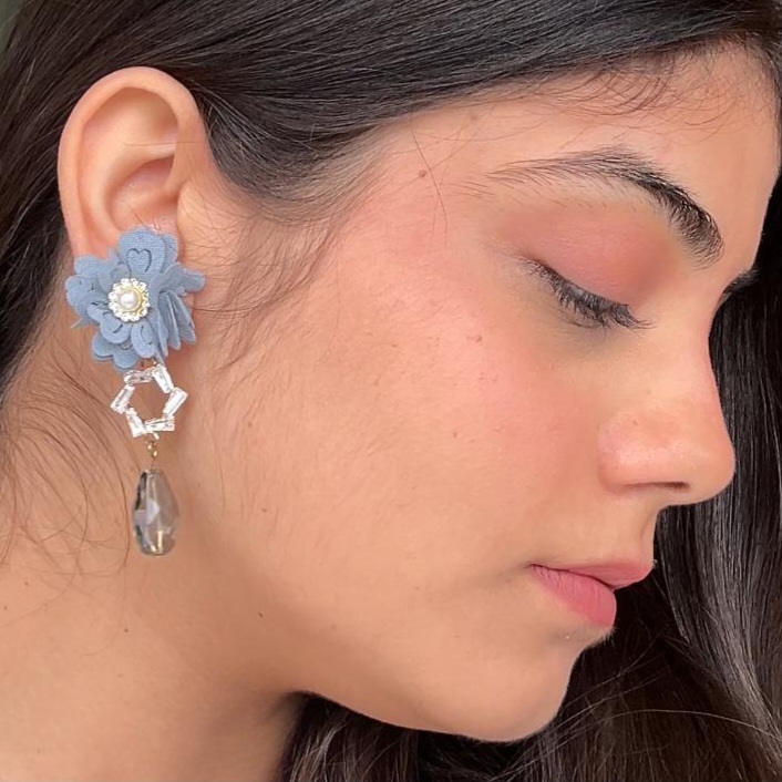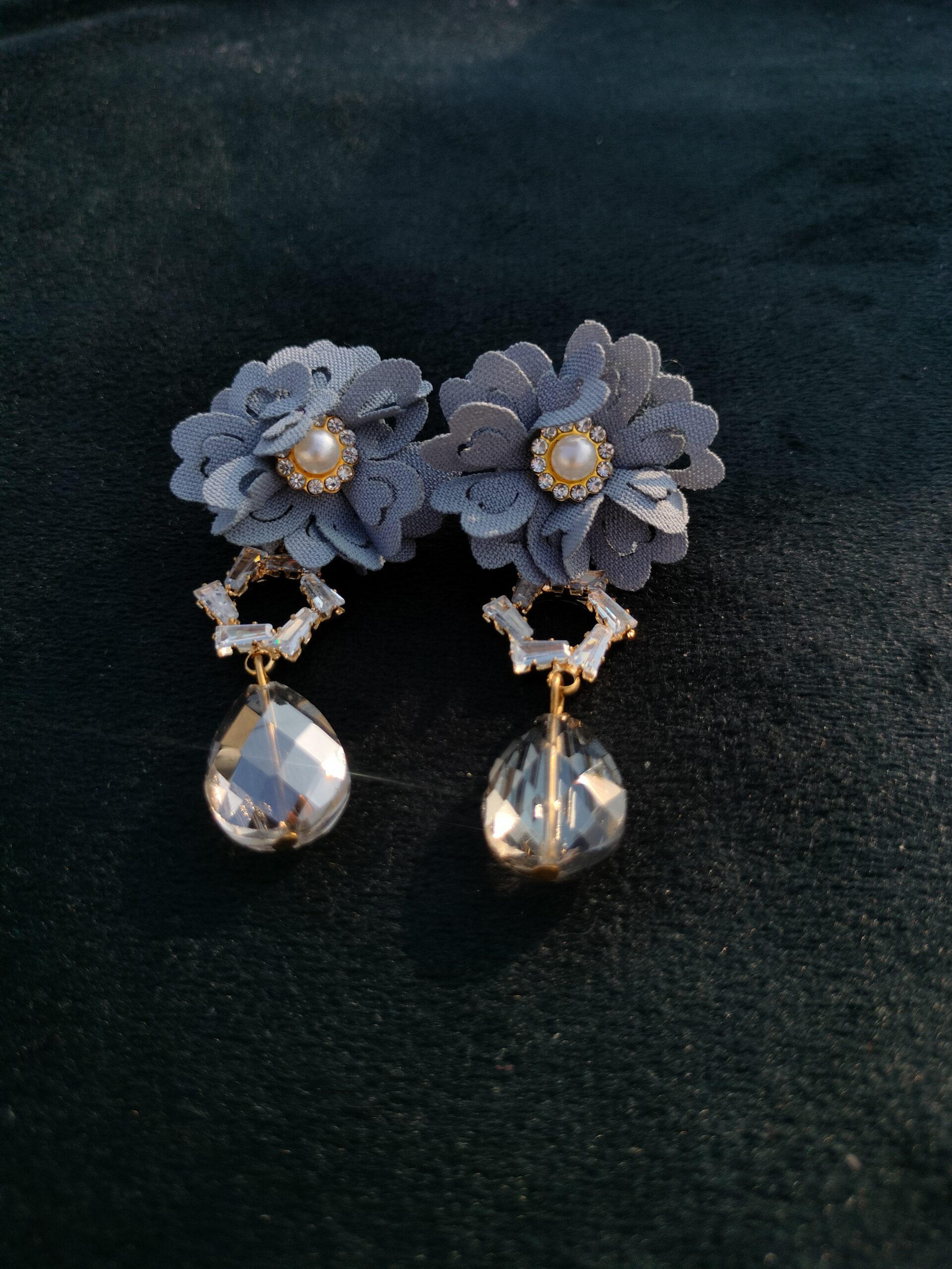 Sky Blue Flower Star Stone Alloy Dangle Earrings for Women and Girls