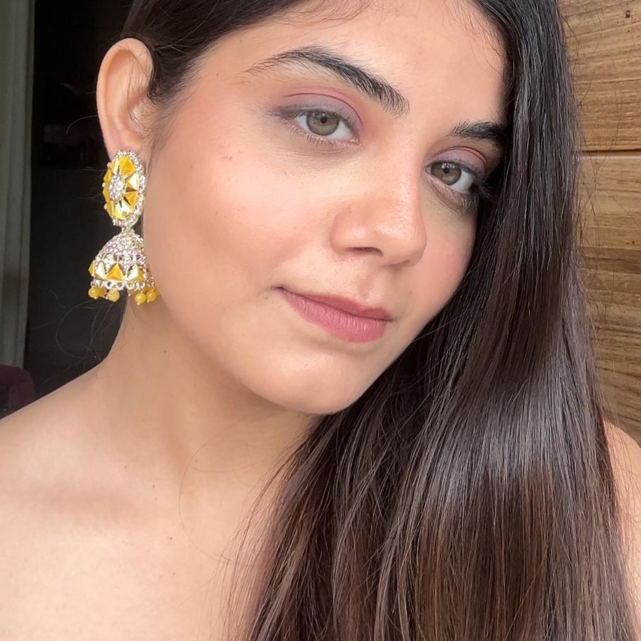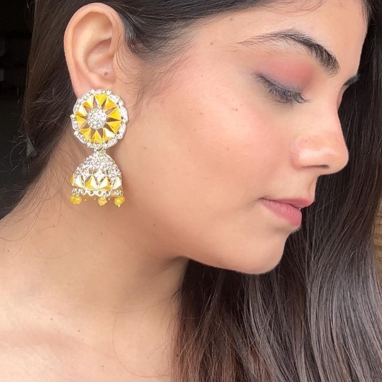 Yellow Stone Round flower Pushback Dome drop Jhumka